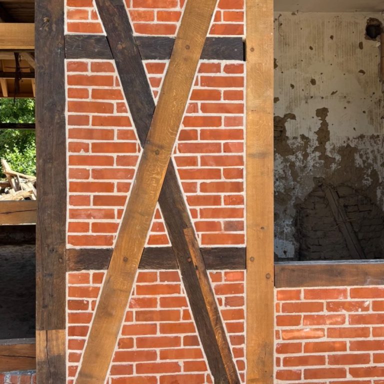 Als Mörtel vermauern wir auch Baustoffe wie Kalk und Lehm, die seit Jahrhunderten für beständige und gesunde Bauwerke sorgen. Wir prüfen sorgfältig, wo der Einsatz dieser Materialien sinnvoll ist, und wenden alte Techniken wieder so an, wie es auch früher gemacht wurde. Besonders bei Fachwerkhäusern sind Kalk und Lehm hervorragend geeignet, um Gefache auszumauern und die ursprüngliche Bauweise authentisch zu erhalten. So wird langlebige Substanz hergestellt, die Geschichte, Qualität und Handwerkstradition vereint.